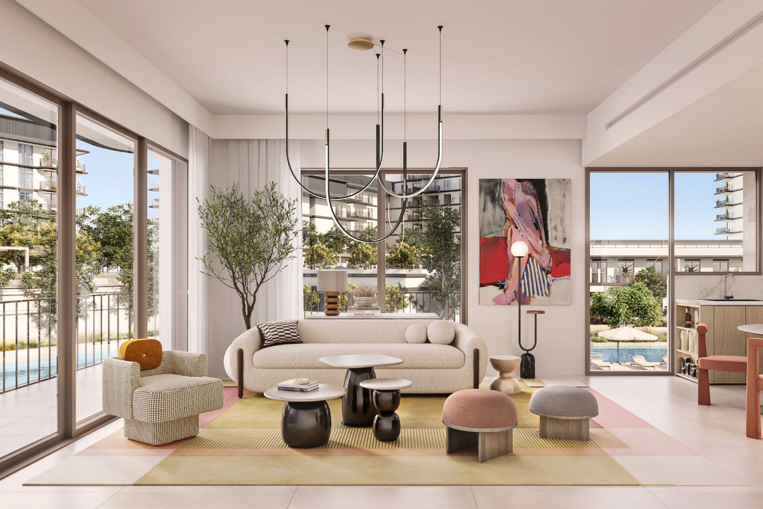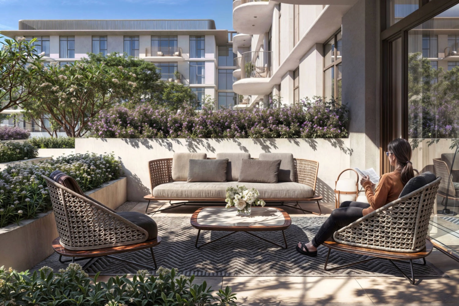 Die Lage überzeugt durch kurze Wege zu wichtigen Punkten: nur zehn Minuten zur Sheikh Zayed Road, 15 Minuten zum Dubai International Airport, 20 Minuten nach Downtown Dubai, zur Dubai Mall und Burj Khalifa sowie zu Dubai Creek Harbour.